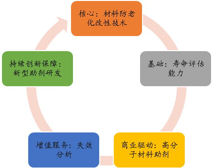 ??? 天罡公司以材料防老化技術(shù)為核心,以化學(xué)合成與產(chǎn)業(yè)化技術(shù)、材料老化預(yù)防老化配方技術(shù)、壽命評估與失效分析,以及化學(xué)及儀器分析技術(shù)為支撐,致力于解決客戶及行業(yè)中迫切需要解決各類技術(shù)問題。天罡應(yīng)用技術(shù)研發(fā)驅(qū)動的商業(yè)模式